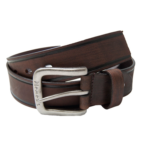 Nemesis Logo Distressed Dark Brown Leather BeltRegular price $50.00 USDRegular priceUnit price per-