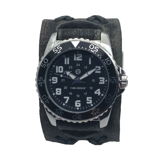 Hybrid Diver Black/White Watch with Double X Distressed Dark Brown Leather Wide CuffRegular price $135.00 USDRegular priceUnit price per
