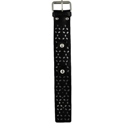 Diamond Stitched Black Leather Snap On Ladies Cuff