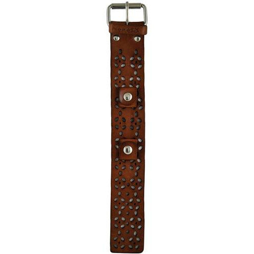 Perforated Dots Dark Brown Leather Wide Snap On Cuff