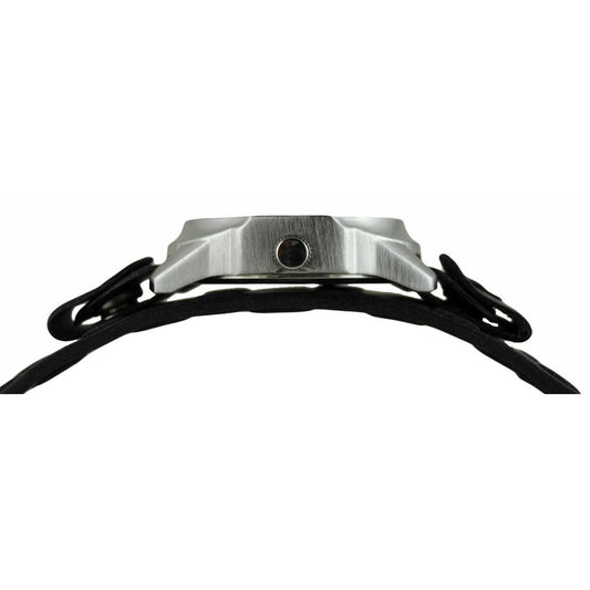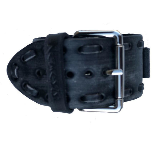 Embossed 3D Black/White Watch with Perforated Dash Distressed Black Leather Cuff