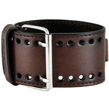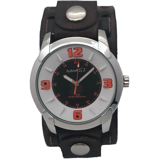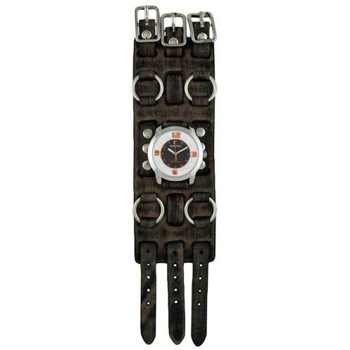 Embossed 3D White/Black Watch with Bullet Ring Distressed Dark Brown Leather Triple Strap Cuff