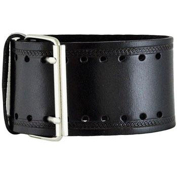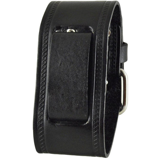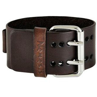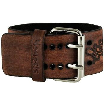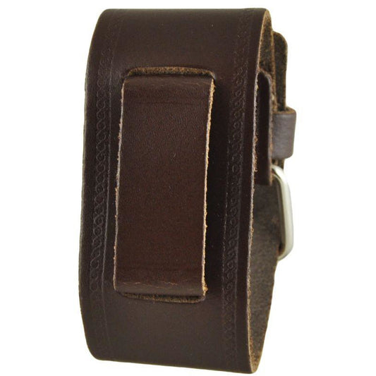 Double Stitched Embossed Distressed Brown Leather Wide Cuff BUIN