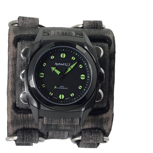 Eternity Black/Green Watch with Distressed Black Leather Triple Strap Cuff