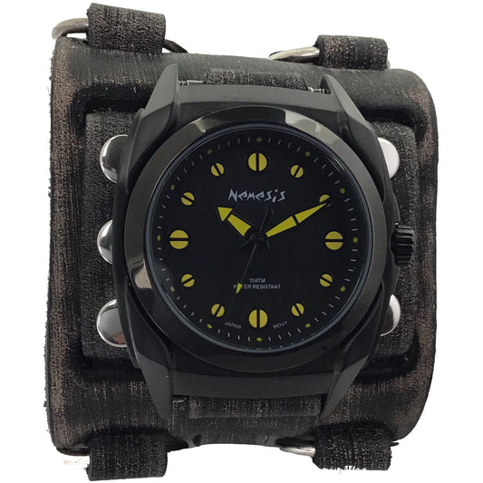 Eternity Black/Yellow Watch with Distressed Black Leather Triple Strap Cuff