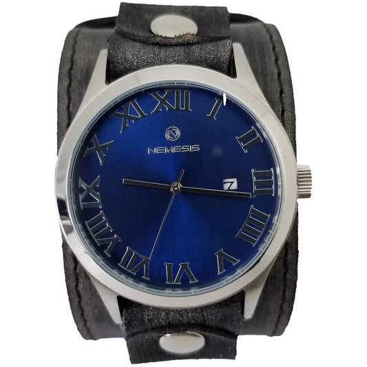 Roman DX Blue Watch with Stitched Distressed Dark Brown Leather Wide CuffRegular price $145.00 USDRegular priceUnit price per-