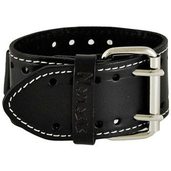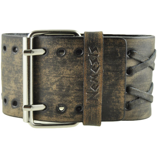 Gradient Pointium Grey Watch with Double X Distressed Dark Brown Leather Wide Cuff