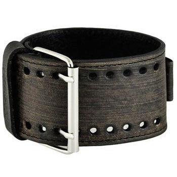 Dragon Sapphire Crystal Black Watch with Perforated Distressed Brown Leather Wide Cuff BFHD250D