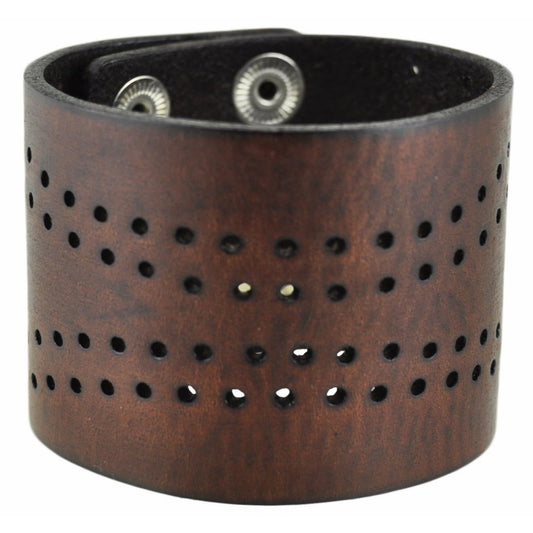 Perforated Dots Dark Brown Leather Wide Snap On Cuff