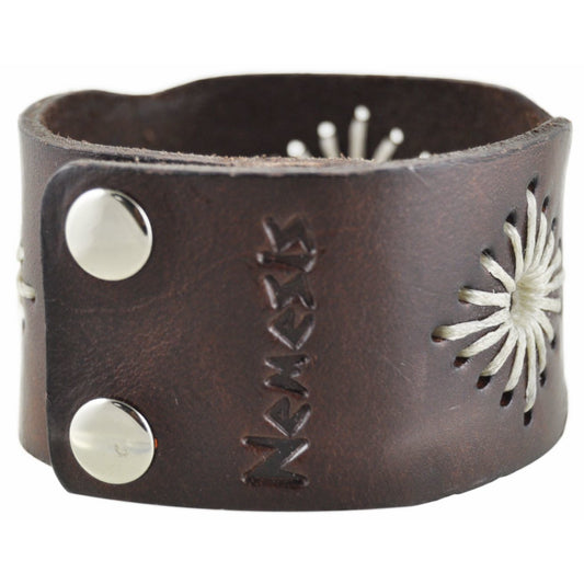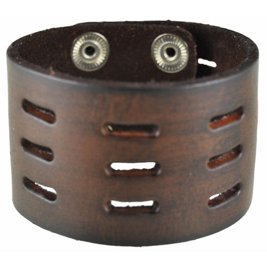 Perforated Dash Dark Brown Leather Wide Snap On Cuff