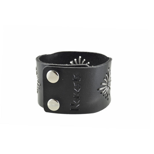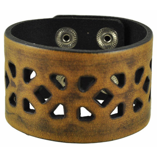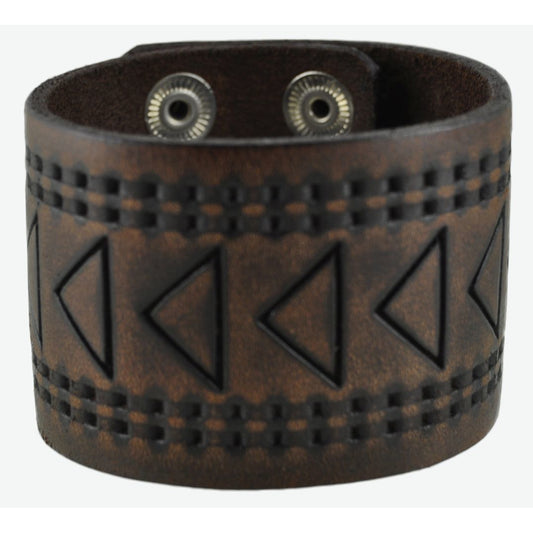 Hole Punched and Triangle Embossed Dark Brown Leather Cuff