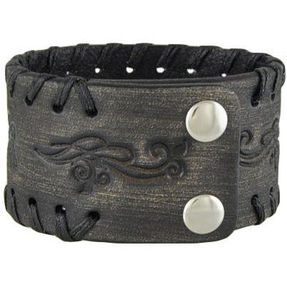 Turtle Shell Engraved Brown Leather Snap On Cuff