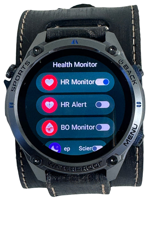 GPS25 Nemesis smart watch with vintage leather cuff band