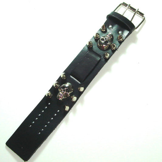 Skull Black Watch with Skull Studded Black Leather Cuff