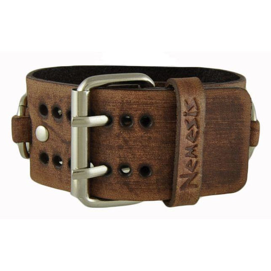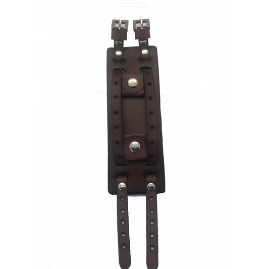 Perforated Dash Dark Brown Leather Wide Snap On Cuff