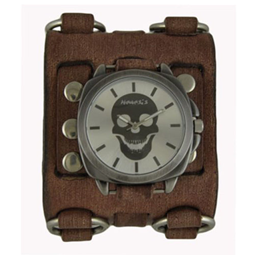 Skull Head Watch with Faded Leather Cuff Band BVSTH395S