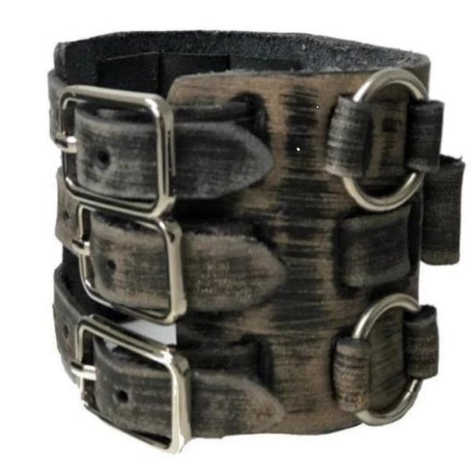 Roman DX Blue Watch with Ring Distressed Charcoal Leather Triple Strap Cuff