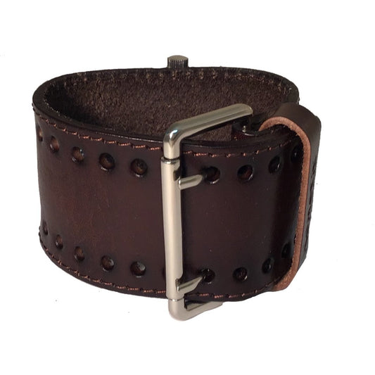 Roman DX Blue Watch with Stitched Distressed Dark Brown Leather Wide Cuff