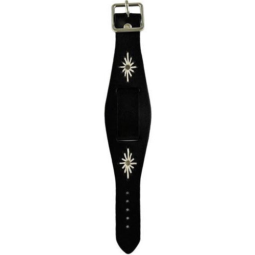 Diamond Stitched Black Leather Snap On Ladies Cuff