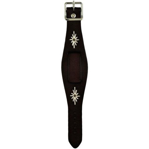 Stitched Perforated Distressed Dark Brown Leather Ladies Cuff