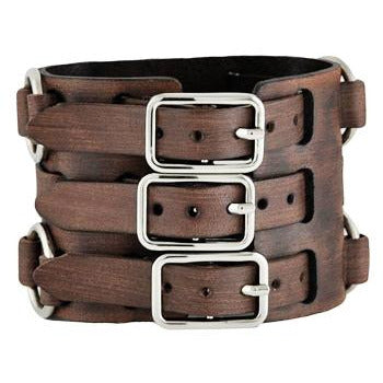 Sully Brown/White Watch with Bullet Ring Distressed Brown Leather Triple Strap Cuff