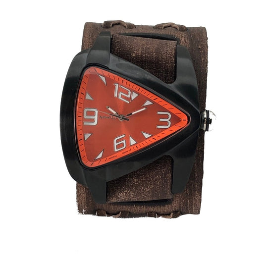 BNWA011B teardrop Stainless Steel Triangle watch with Brown weaved leather cuff band