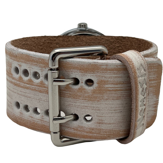 Sully Brown/White Watch with Perforated Dark Brown Leather Cuff
