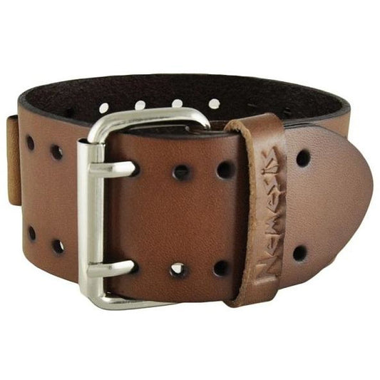 Sporty Racing Brown Watch with Perforated Dash Brown Leather Cuff Band