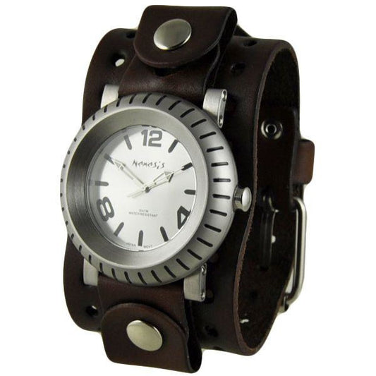 Silver Wheelman Watch with XL Basic Brown Leather Cuff Band BJB079S