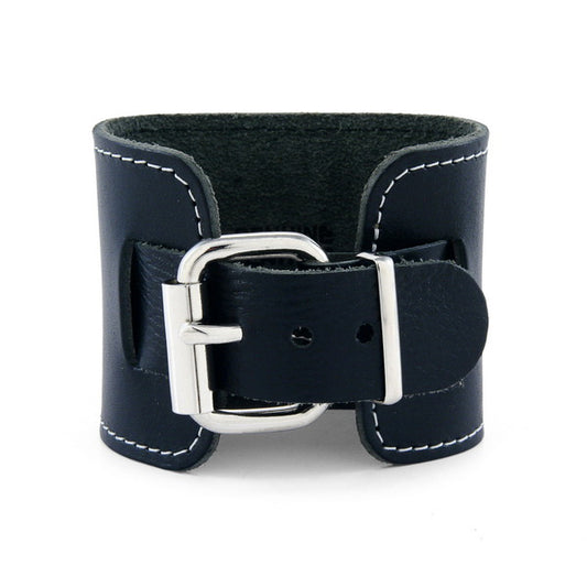 Double Perforated Distressed Black Leather Wide Cuff VLH-K