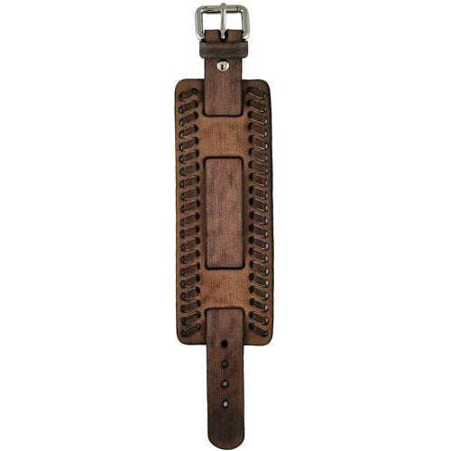 Double Perforated Distressed Brown Leather Wide Cuff VLH-B
