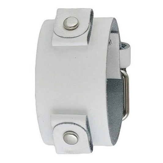 Sapphire Crystal Ladies White Watch with Stitched Dark Brown Leather Cuff