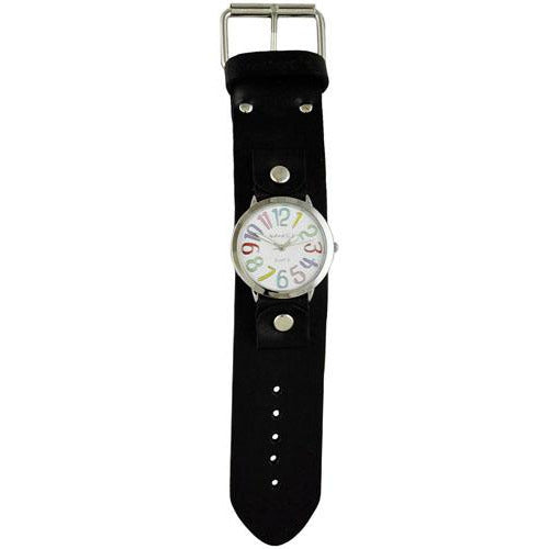 Showgirl Ladies Black Watch with Diamond Stitched Black Leather Cuff