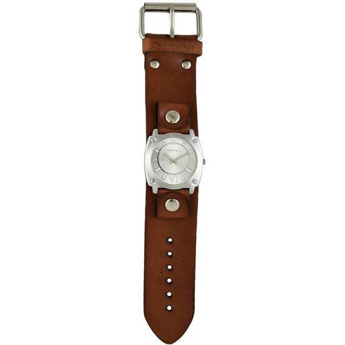 Gala Ladies Silver Watch with Dark Brown Leather Cuff