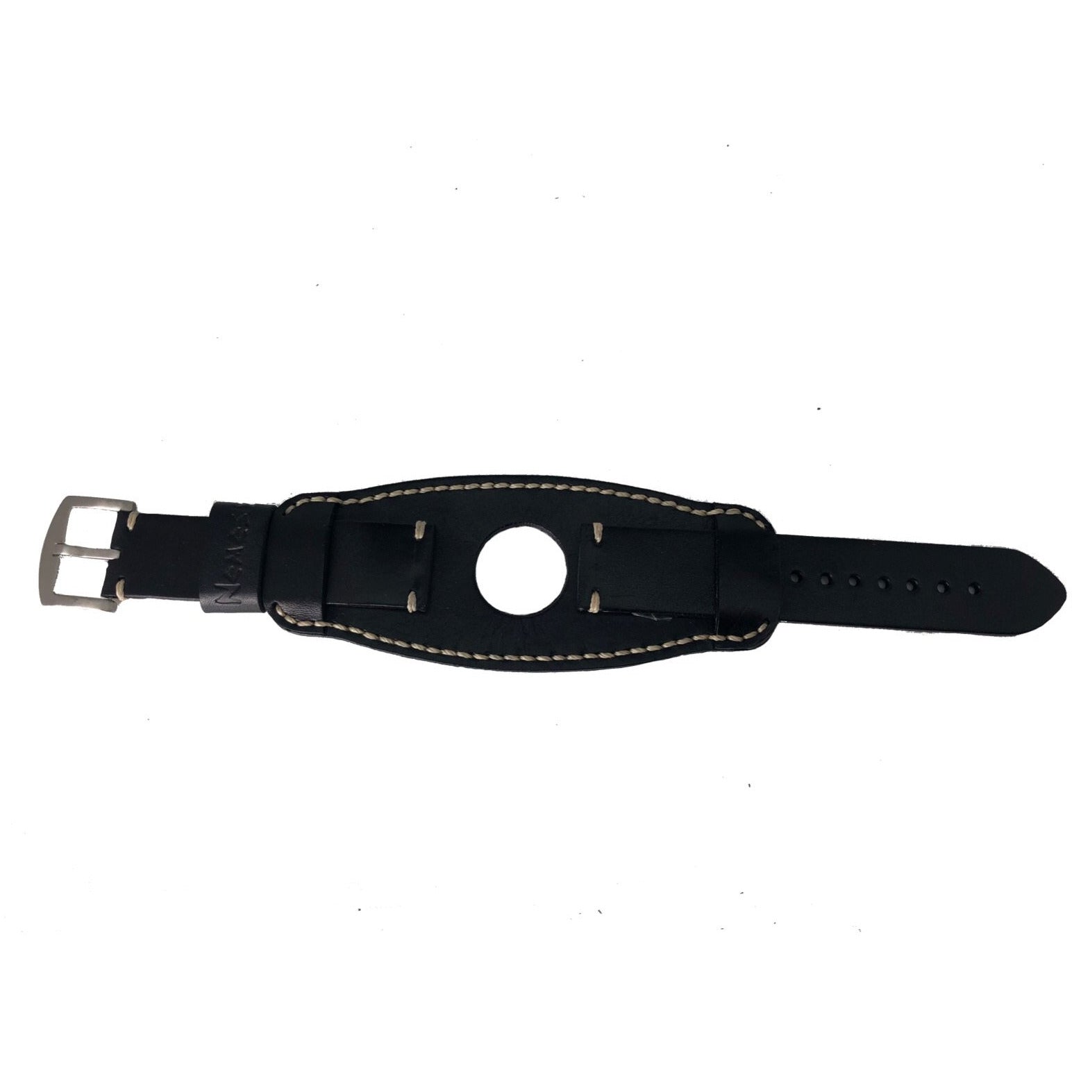 Smart Watch White Stitched Dark Brown Leather Cuff