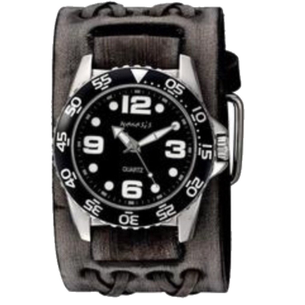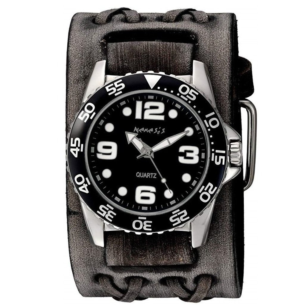 Groovy Black Watch with Double X Distressed Charcoal Leather Wide Cuff VDXB097K