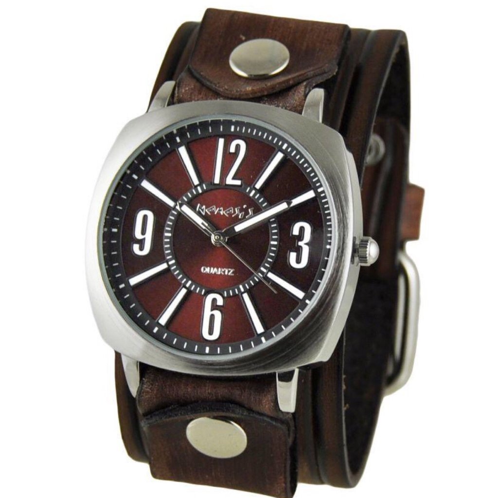 Comely Brown Watch with Embossed Stripes Brown Leather Cuff BVEB110BU