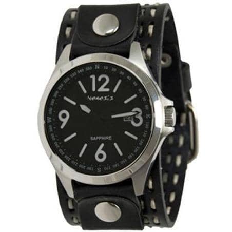 Sapphire Crystal Black Watch with Stitched Black Leather Cuff